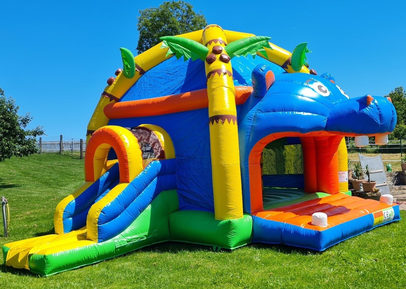Unsere Hüpfburg Hippo mit einer Maße von 5m x 5,50 m